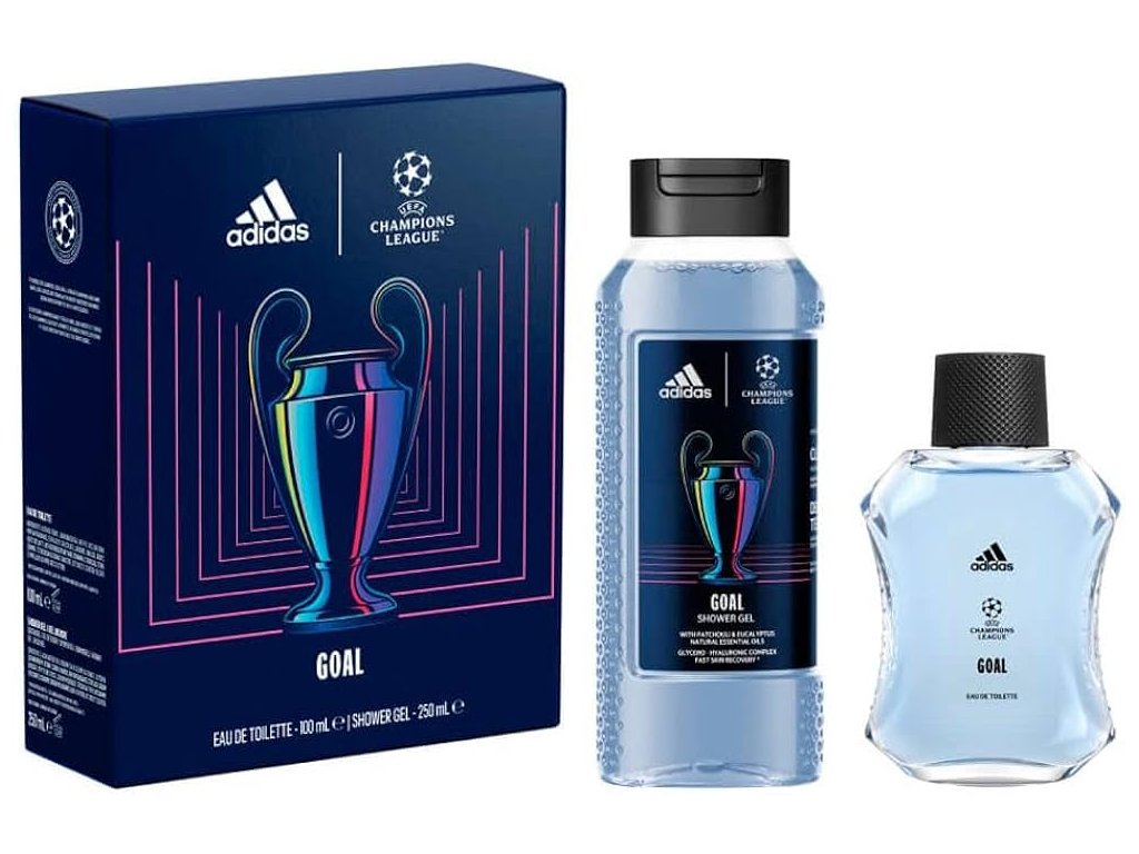 Adidas Champions League Goal EDT 50 ml + sprchový gél 250 ml. Svieža pánska vôňa s citrónom, levanduľou a drevom. Ideálny darček pre športovcov.