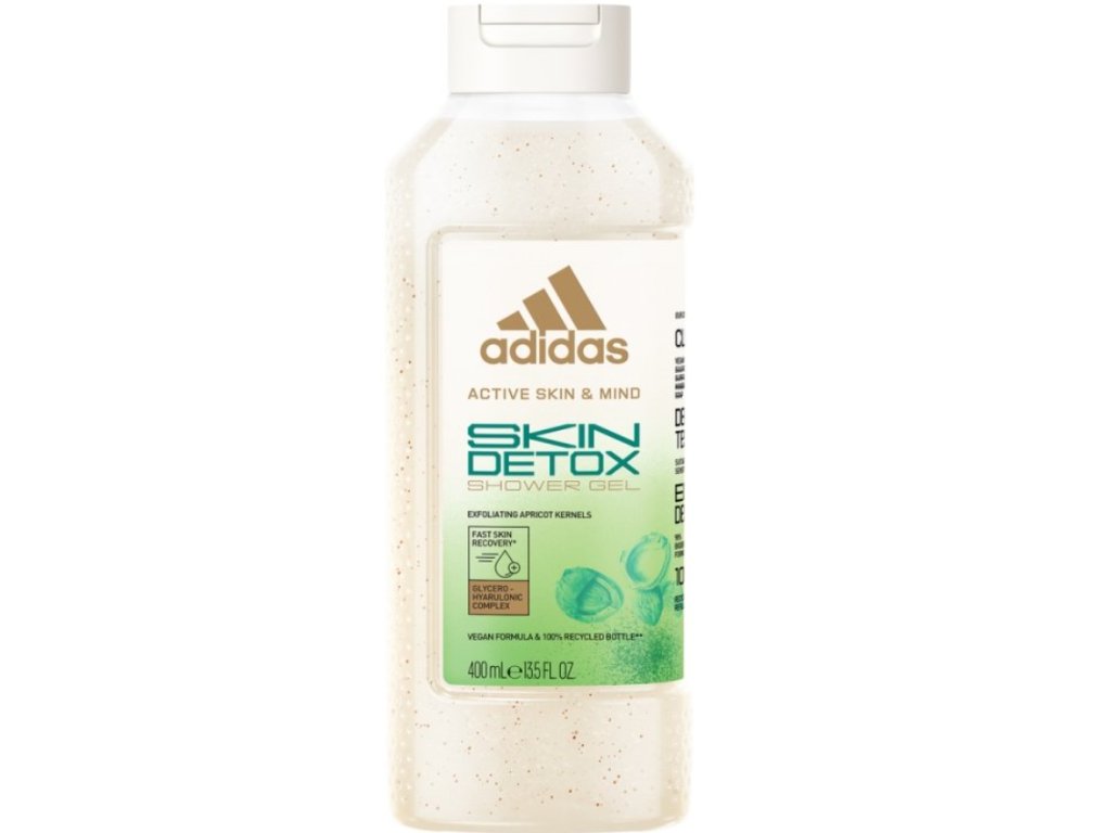 Adidas Skin Detox sprchový gél 400 ml Apricot. Osviežujúci peelingový gél s marhuľovým extraktom – jemne odstraňuje odumreté bunky a zanecháva pokožku sviežu a hebkú.
