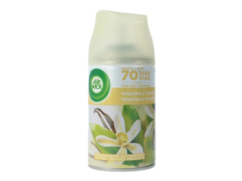 Air Wick Freshmatic Vanilla & Orchidea 250 ml. Jemná sladko-kvetinová vôňa vanilky a orchidey pre nepretržité prevoňanie domova. Automatická výmena vône až 70 dní.