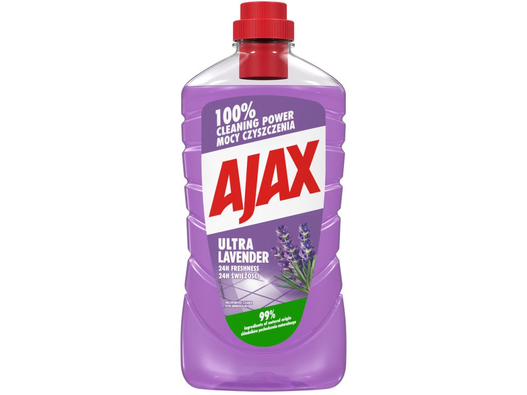 Ajax Ultra Lavender 1 l. Univerzálny čistiaci prostriedok s vôňou levandule. Zanecháva povrchy žiarivo čisté, dezinfikuje a dodáva dlhotrvajúcu sviežosť.