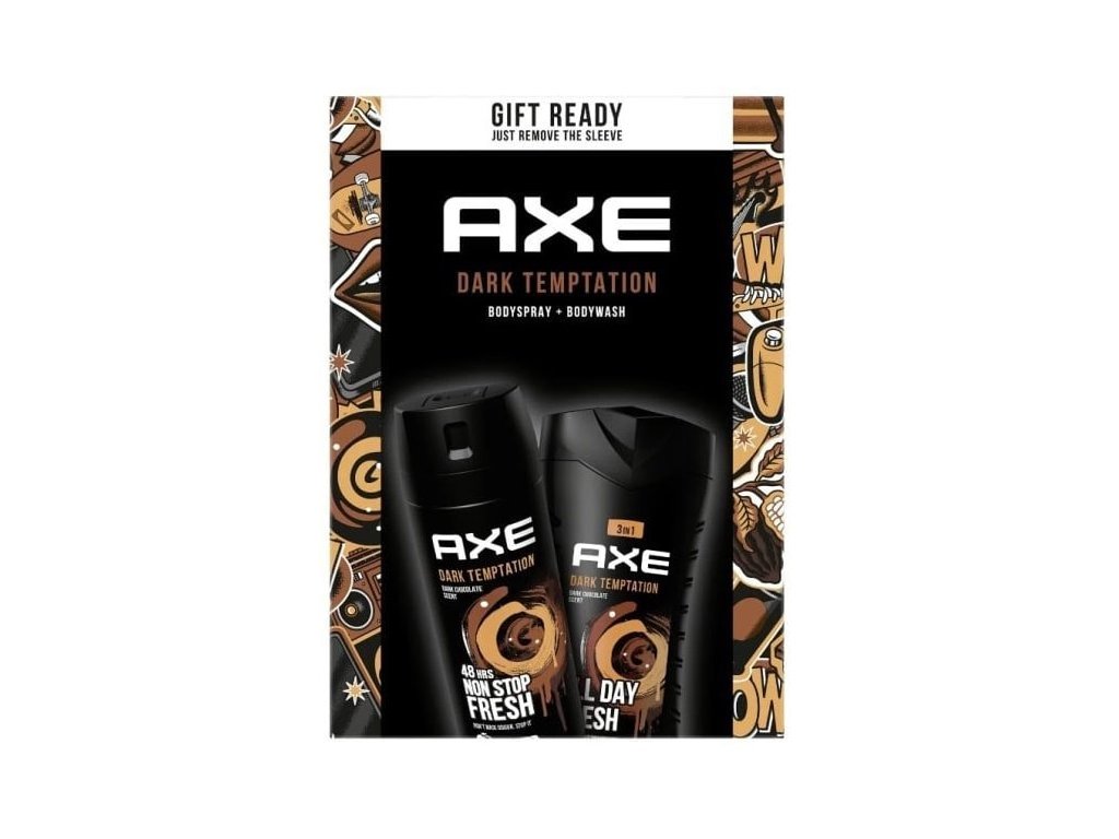 Axe Dark Temptation set – deo 150 ml + sprchový gél 250 ml. Sladká čokoládová vôňa.