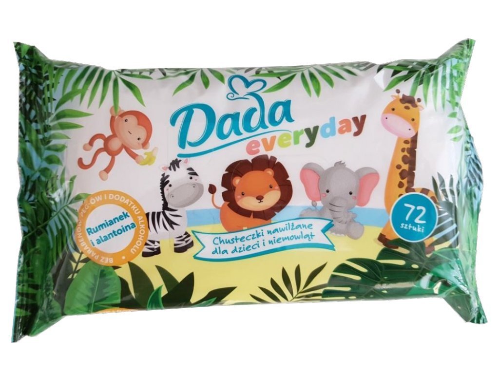 Mäkké a jemné, ale odolné vlhčené obrúsky Dada Everyday sú určené na každodennú starostlivosť o pokožku detí a bábätiek. Zloženie hydratačného mlieka upokojuje detskú pokožku, obsahuje jemné umývacie látky, výťažok z harmančeka a alantoín. Vyvinuté tak, aby minimalizovalo riziko alergií.