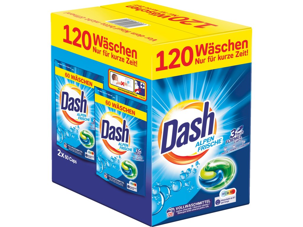 Dash 3in1 Alpine Fresh 120 ks. Pracie kapsuly so sviežou alpskou vôňou, ktoré čistia, odstraňujú škvrny a rozjasňujú bielizeň v jednom kroku.