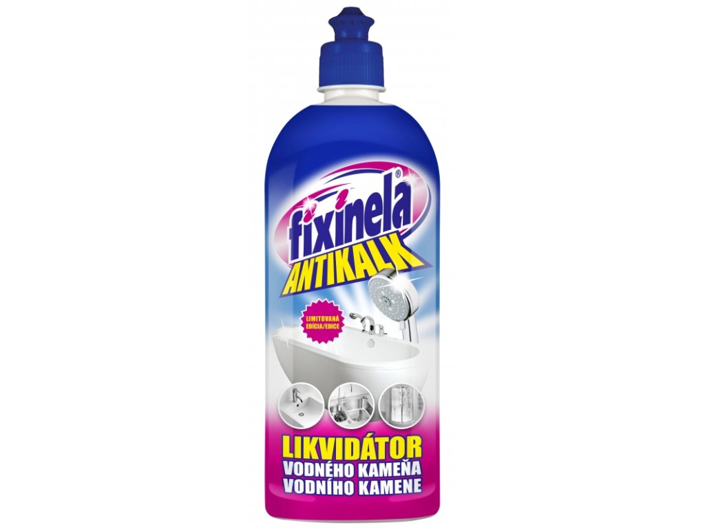 Vysoko účinný tekutý čistiaci prostriedok obsahujúci anorganické kyseliny a účinné tenzidy. Slúži na čistenie veľmi znečistených plôch, na odstraňovanie vodného kameňa, mydlových usadenín a hrdze z keramických dlaždíc, vaní, umývadiel, sprchových kútov. WC mís, obkladačiek, nerezových drezov. Fixinela antikalk má vysoký čistiaci účinok, vniká do usadenín a rýchlo ich uvoľňuje z povrchu. Je ľahko oplachovateľná a zanecháva čisté povrchy.