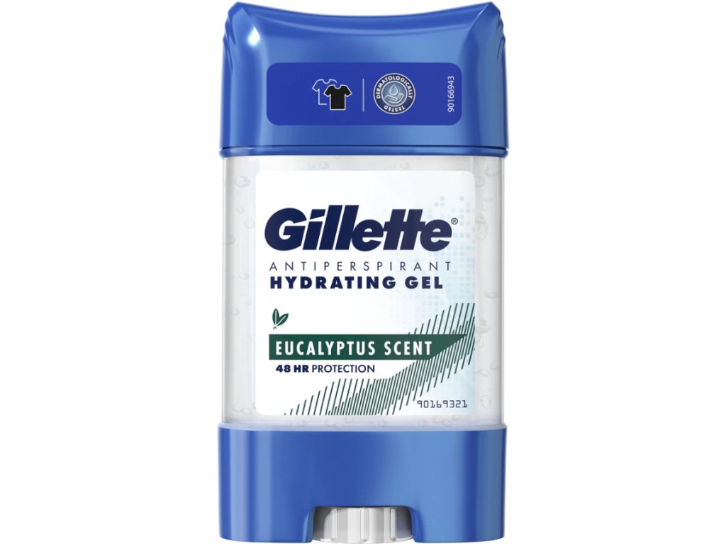 Gillette antiperspirant gél 70 ml Eucalyptus. Spoľahlivá ochrana proti poteniu až 48 hodín so sviežou vôňou eukalyptu.