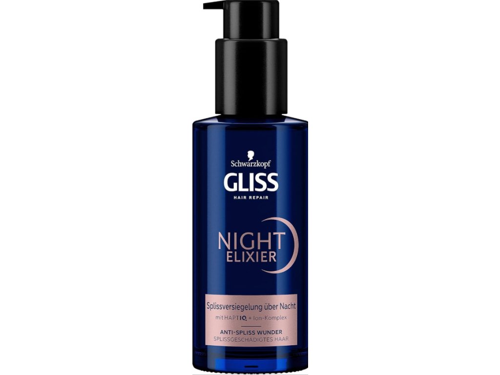 Gliss Kur Night Elixir Anti Spliss Wunder 100 ml. Nočný elixír, ktorý zacelí a redukuje rozštiepené končeky, regeneruje vlasy a zanechá ich hladké a lesklé.