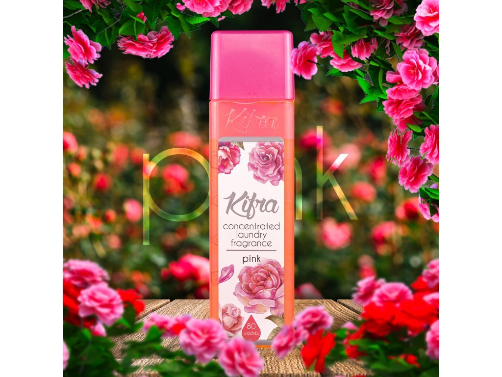 Koncentrovaný parfém na pranie Kifra PINK s vôňou ružových kvetov.