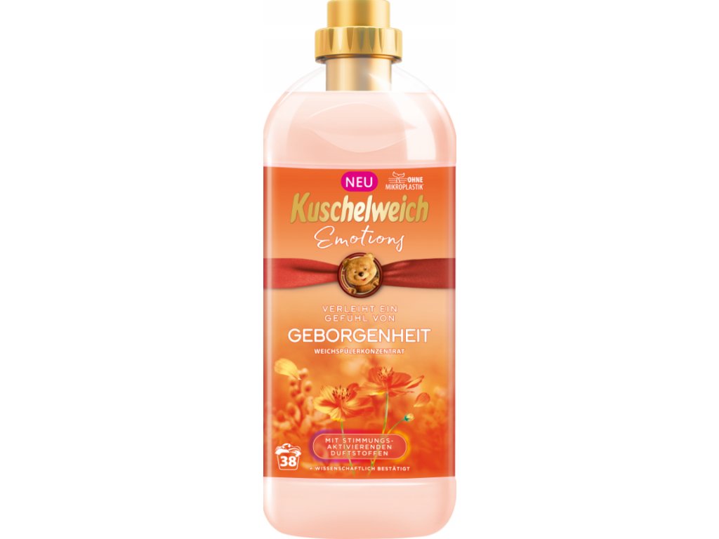 Kuschelweich Emotions Geborgenheit aviváž 1 l = 38 praní. Jemná, upokojujúca vôňa a hebkosť pre vašu bielizeň. Starostlivosť o vlákna a dlhodobá sviežosť.
