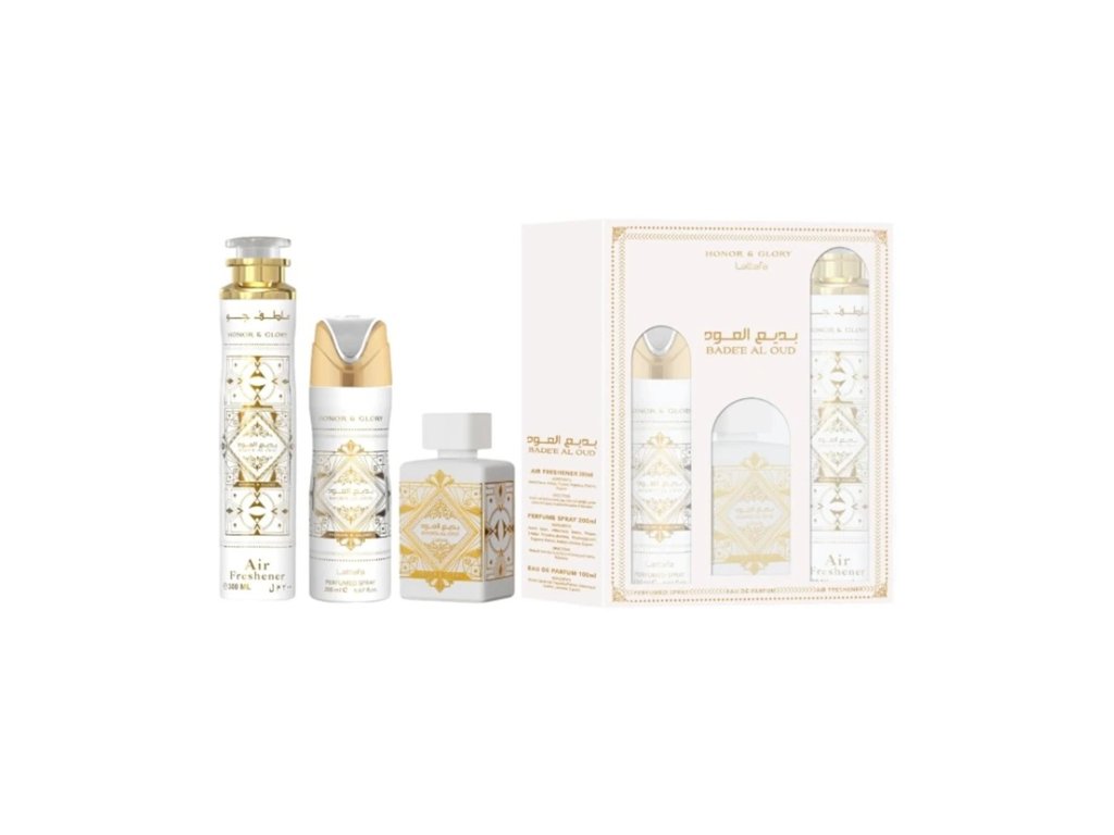 Lattafa Badee Al Oud Honor and GIory Eau De Parfum 100 ml + Parfumovaný sprej 200 ml + Parfumovaný osviežovač 300ml