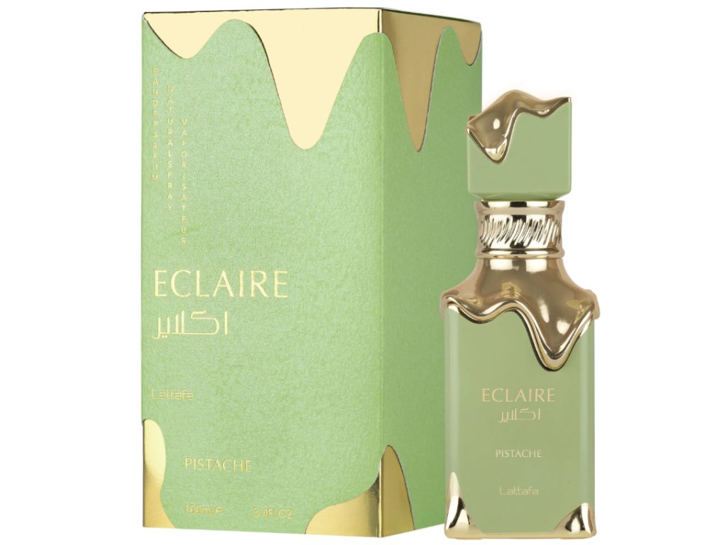 Lattafa Eclaire Pistache EDP 100 ml. Luxusná unisex vôňa s tónmi pistácií, mandlí a vanilky. Krémová, sladká a elegantná – ideálna pre milovníkov gurmánskych parfumov.