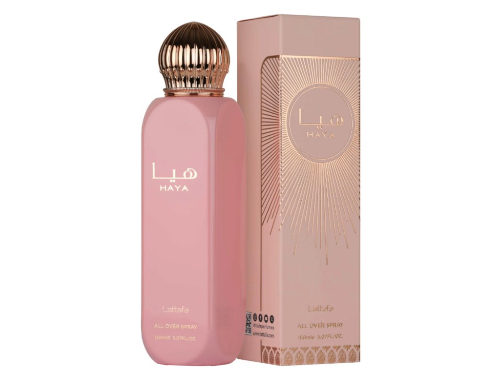 Lattafa Haya telový sprej 150 ml. Dámska vôňa s ovocno-kvetinovým charakterom a jemne sladkým záverom. Praktický sprej na každodenné osvieženie a pocit sviežosti.