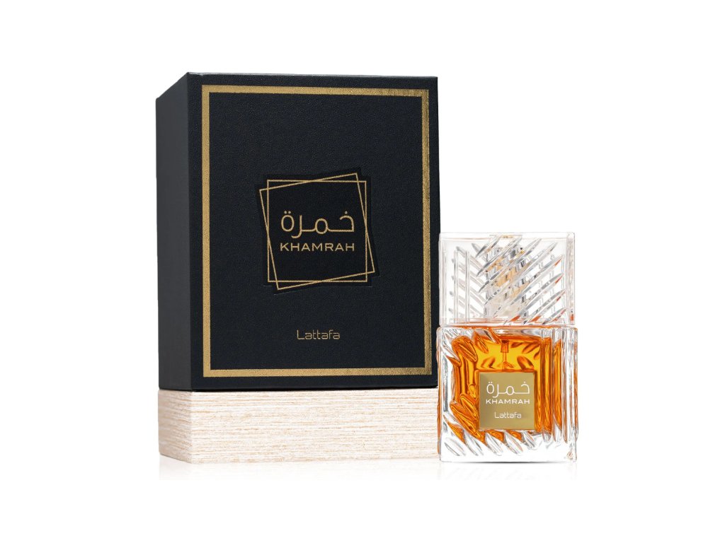 Lattafa Khamrah 2ml. Orientálno-korenistá unisex vôňa so škoricou, datľami, vanilkou a oud drevom. Luxusný parfum s dlhotrvajúcou intenzitou.