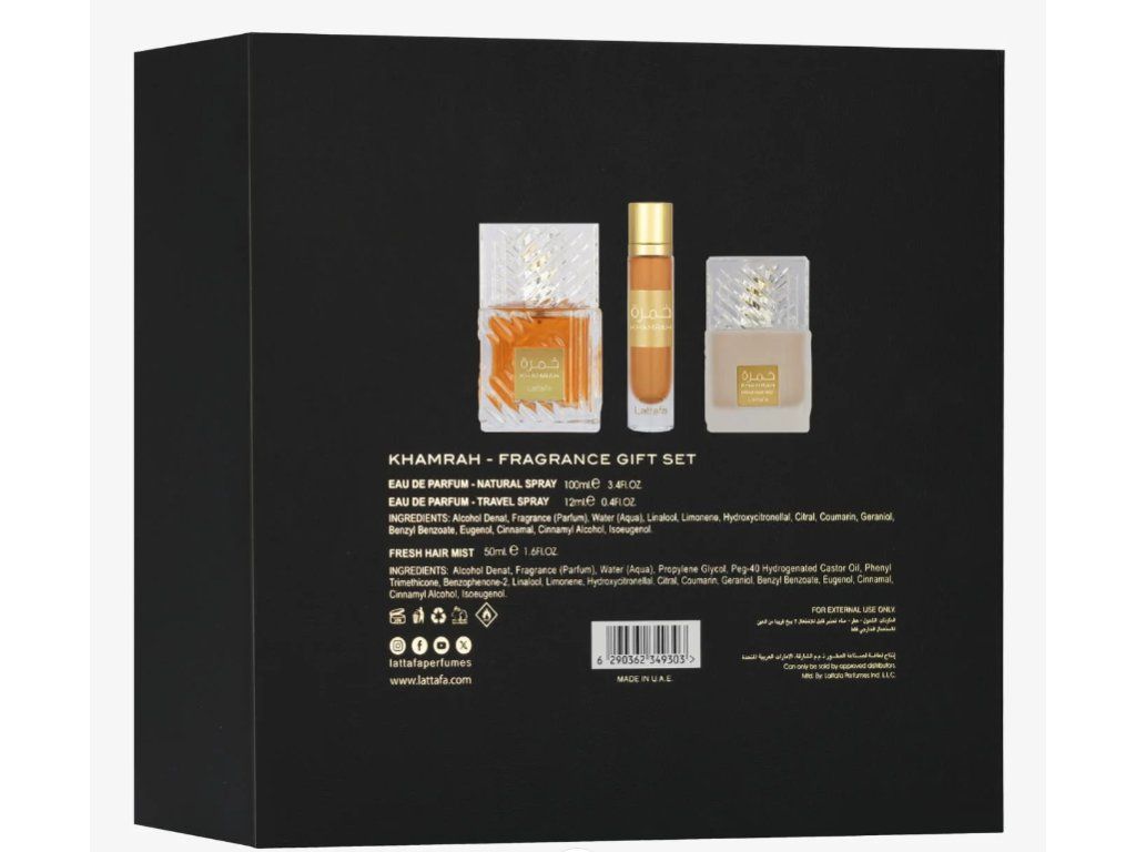 Lattafa Khamrah Set 100ml Eau De Parfum + 12ml EDP + 50ml Hair Mist