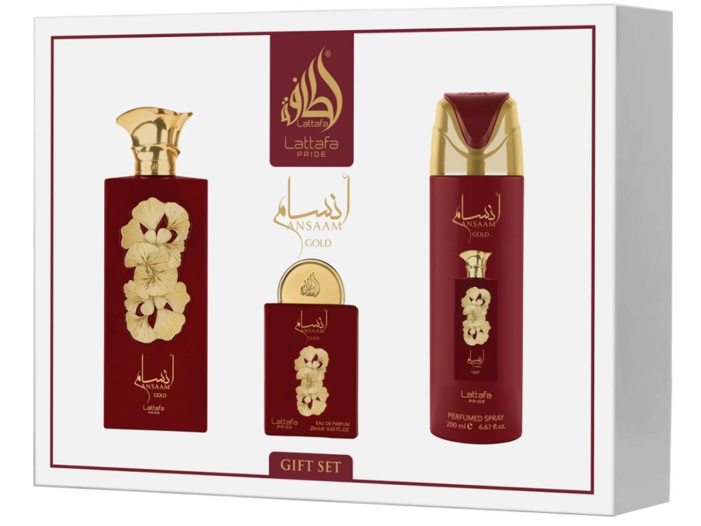 je ideálnou voľbou pre všetkých, ktorí milujú luxusné orientálne vône a chcú potešiť seba alebo svojich blízkych. Dominantou setu je parfumová voda Ansaam Gold, ktorá spája svieže ovocné akordy s jemnými kvetinami a sladkým ambrovým základom. Vôňa je elegantná, zmyselná a dlhotrvajúca, vhodná na denné aj večerné nosenie. Set obsahuje aj doplnkové produkty (napríklad telový sprej alebo sprchový gél), ktoré umocnia celkový zážitok z vône.