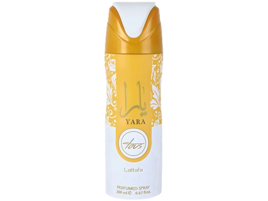 Lattafa Yara Tous sprej 200 ml. Jemná sladko-ovocná a krémová vôňa inšpirovaná obľúbenou parfumovanou vodou Yara Tous. Dlhá výdrž, elegantná ženská vôňa a skvelá celodenná sviežosť.