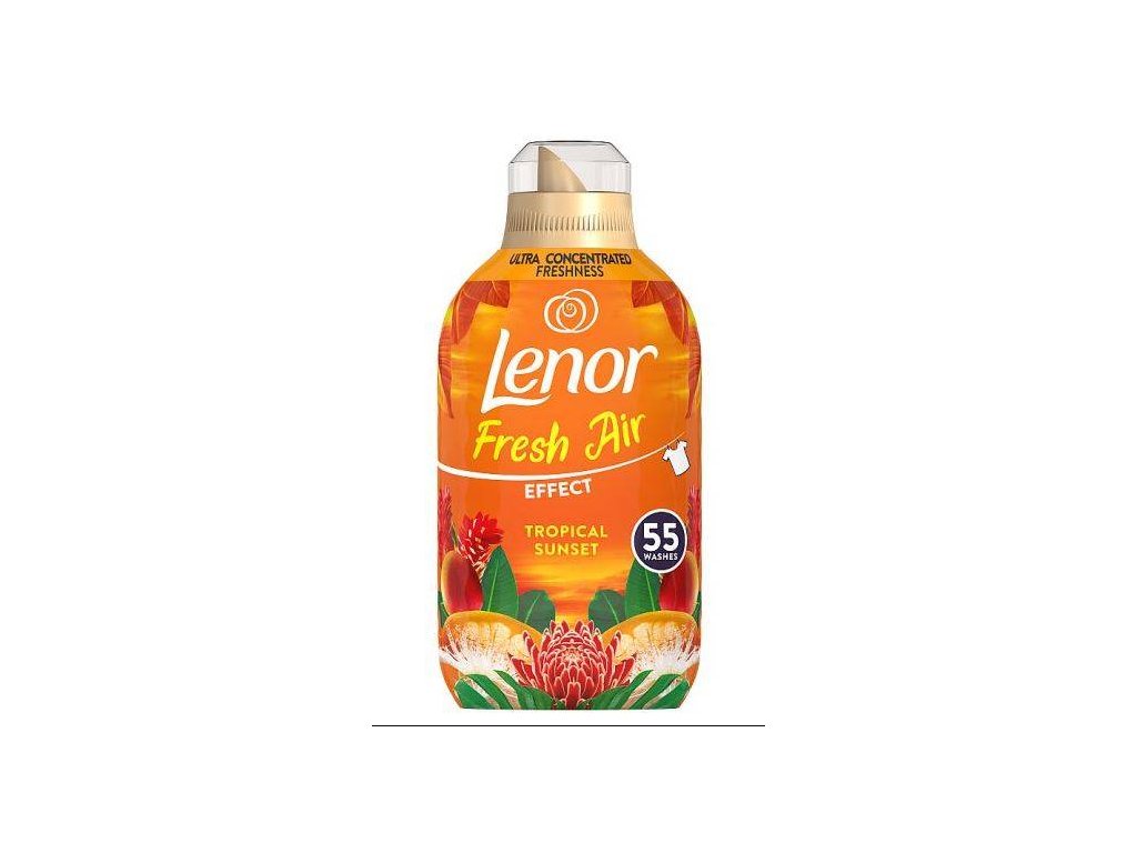 Aviváž Lenor Fresh Air Tropical Sunset (770 ml, cca 55 praní) prináša exotickú sviežosť ako po sušení na čerstvom vzduchu. Tropická ovocná vôňa s tónmi melónu a manga obklopí tvoje prádlo dlhotrvajúcou arómou. Vďaka ultra koncentrovanej forme stačí malé množstvo na každý prací cyklus – tkaniny sú jemné, hebké, farebné odtiene žiaria a žehlenie je jednoduchšie.