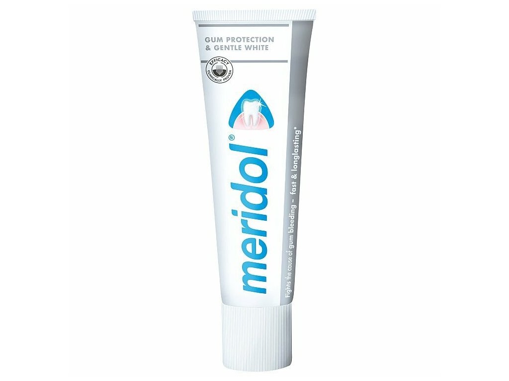 Meridol® Gum Protection & Gentle White je zubná pasta, ktorá poskytuje komplexnú starostlivosť o ústnu dutinu. Jej špeciálne zloženie pomáha bojovať proti príčinám problémov s ďasnami, ako je krvácanie a zápal, a zároveň šetrne bieli zuby odstraňovaním povrchových škvŕn.