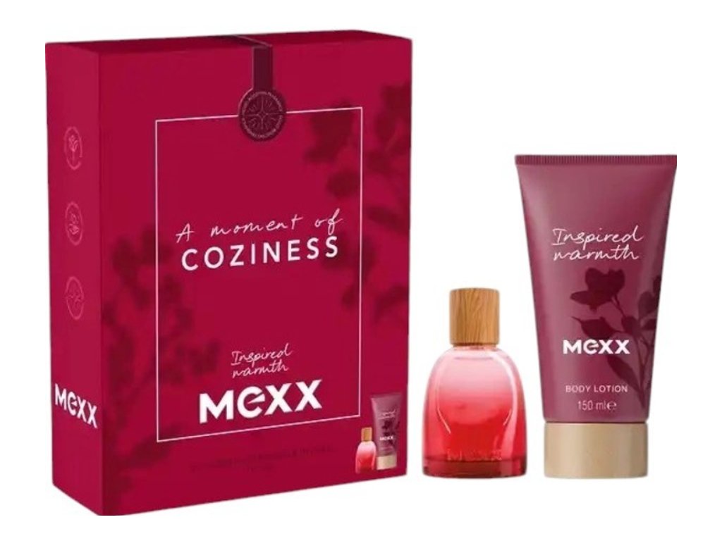 Mexx Inspired Warmth For Her set: parfumovaná voda 30 ml a telové mlieko 150 ml. Jemná ženská vôňa s hrejivými tónmi pre každodennú eleganciu.
