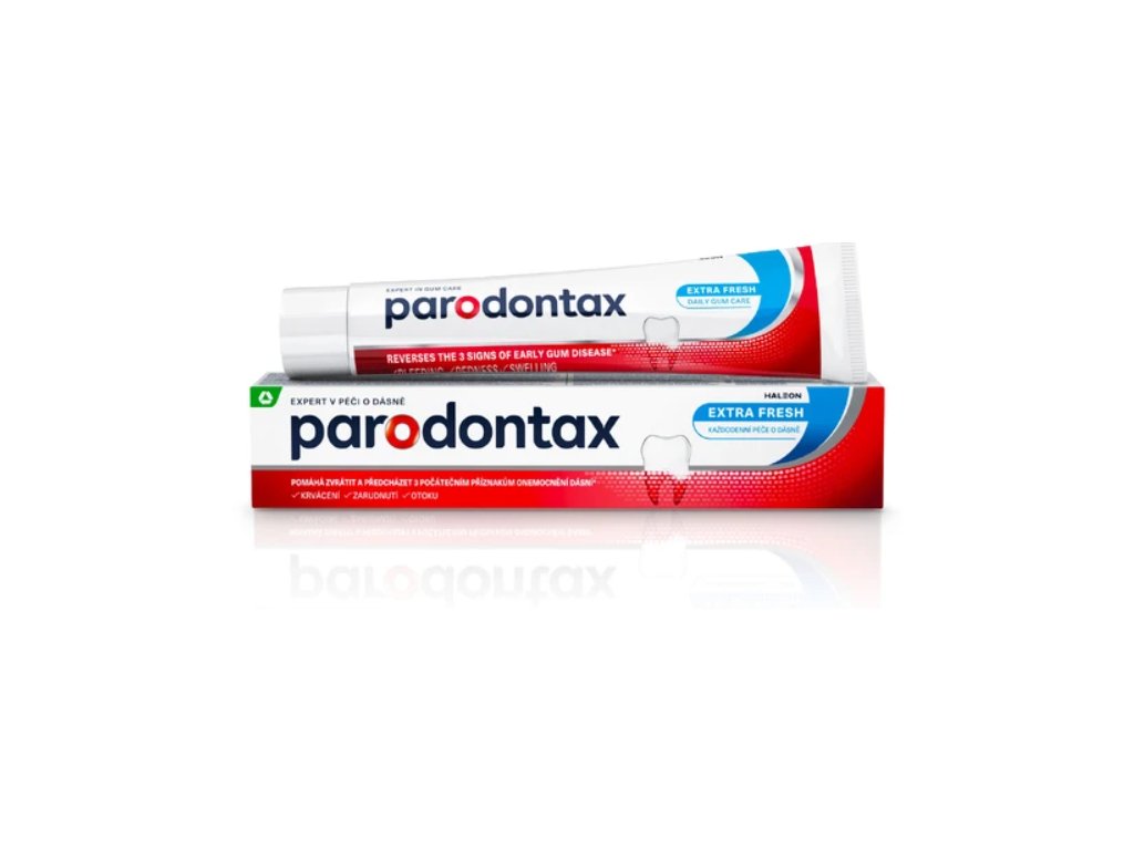 Parodontax Extra Fresh je špecializovaná zubná pasta vyvinutá pre ľudí so sklonom ku krvácaniu ďasien. Jej unikátne zloženie odstraňuje zubný povlak – hlavnú príčinu podráždených ďasien – a pomáha tak predchádzať ich krvácaniu.