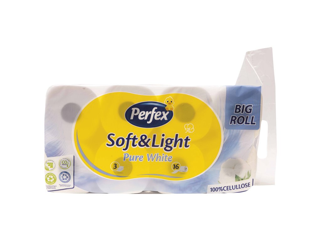 Perfex Soft&Light 3-vrstvový toaletný papier 16 ks. Extra jemný, pevný a príjemný na pokožku. Ideálny pre každodenné používanie.