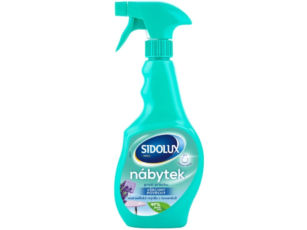 SIDOLUX na nábytok proti prachu bude Váš nábytok vždy žiariť čistotou s vôňou Marseillského mydla s levanduľou. Špeciálna aktívna pena odstraňuje z povrchov prach a zabraňuje jeho ďalšiemu usadzovaniu. Tajomstvo produktu spočíva v špeciálnej aktívnej pene. Vďaka nej odstraňuje prostriedok všetky drobné častice z povrchu nábytku a nezanecháva šmuhy. Okrem toho vytvára na vyčistenom povrchu aktívny štít, ktorý chráni nábytok pred opätovným usadzovaním prachu. Navyše má prostriedok príjemnú vôňu, ktorú ucítite ešte dlho po skončení upratovania.