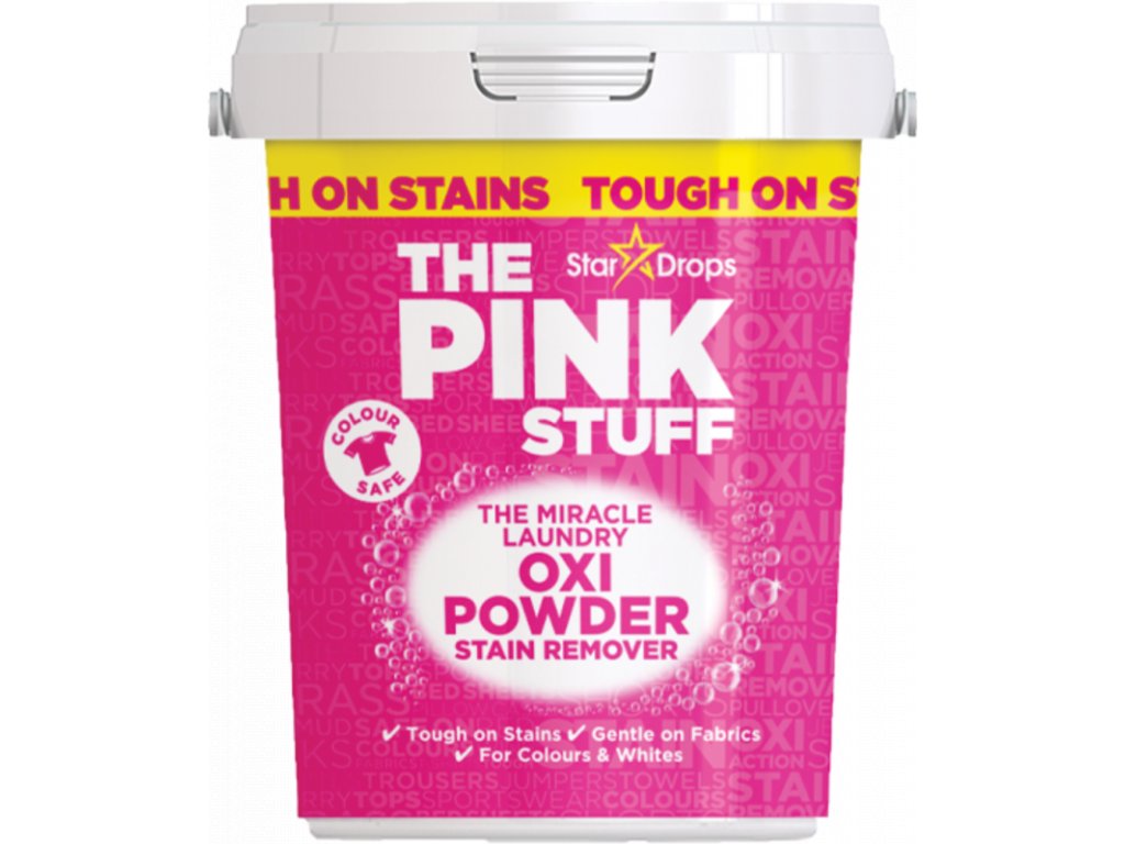 Pink Stuff Oxi Powder Stain Remover od Stardrops je účinný odstraňovač škvŕn, ktorý odstraňuje tie najodolnejšie škvrny, ktoré možno použiť na farebnom aj bielom oblečení. Odstraňovač škvŕn je šetrný k tkaninám a odolný voči škvrnám, pričom zanecháva oblečenie jemné a voňavé.