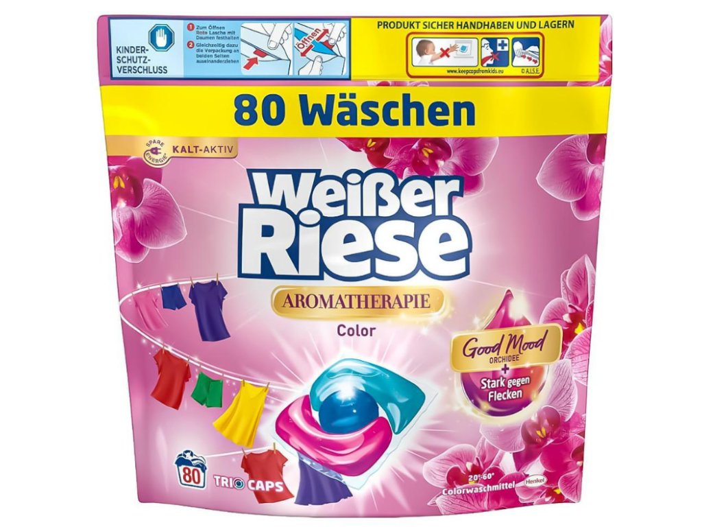Weisser Riese Color kapsuly na pranie (80 ks) prinášajú spoľahlivú starostlivosť o vašu farebnú bielizeň. Vďaka účinnému zloženiu prenikajú hlboko do vlákien, kde odstraňujú aj odolné škvrny, pričom chránia intenzitu farieb pred vyblednutím. Každá kapsula je predom nadávkovaná, takže zabezpečuje jednoduché a pohodlné použitie bez rizika predávkovania pracím prostriedkom. XXL balenie 80 kapsúl je ideálne pre väčšie domácnosti a rodiny, ktoré hľadajú kvalitu, úsporu a dlhodobú spoľahlivosť.